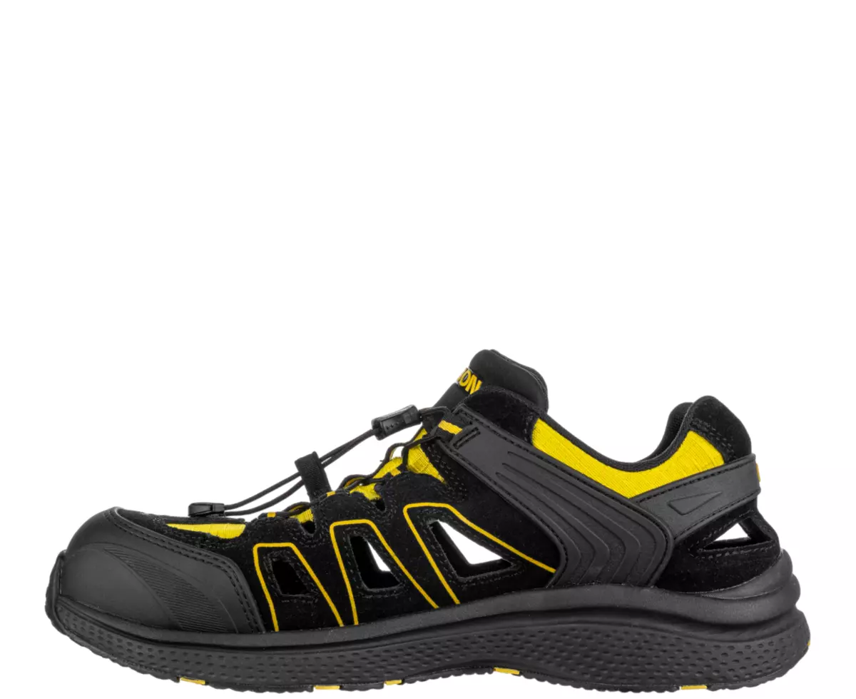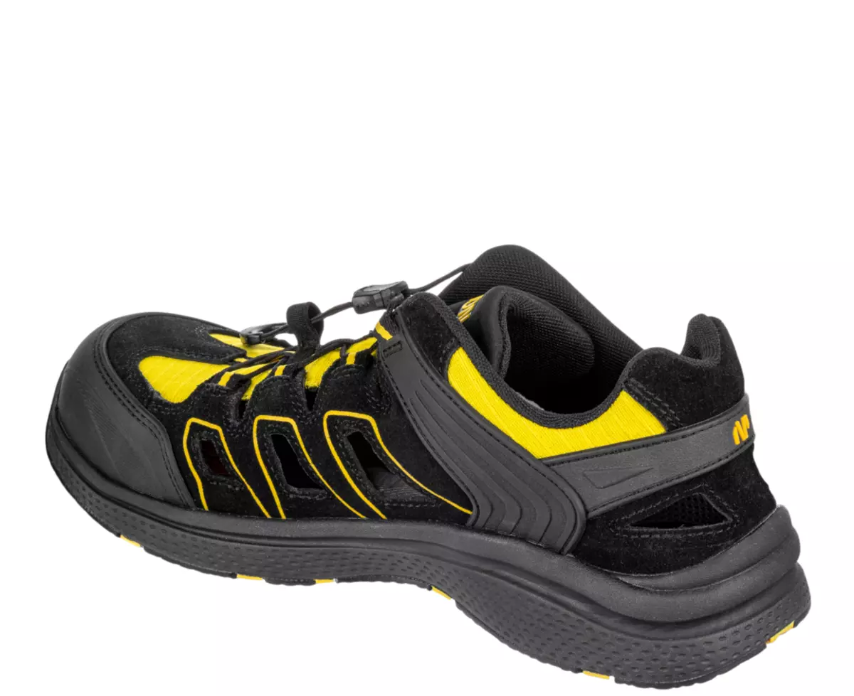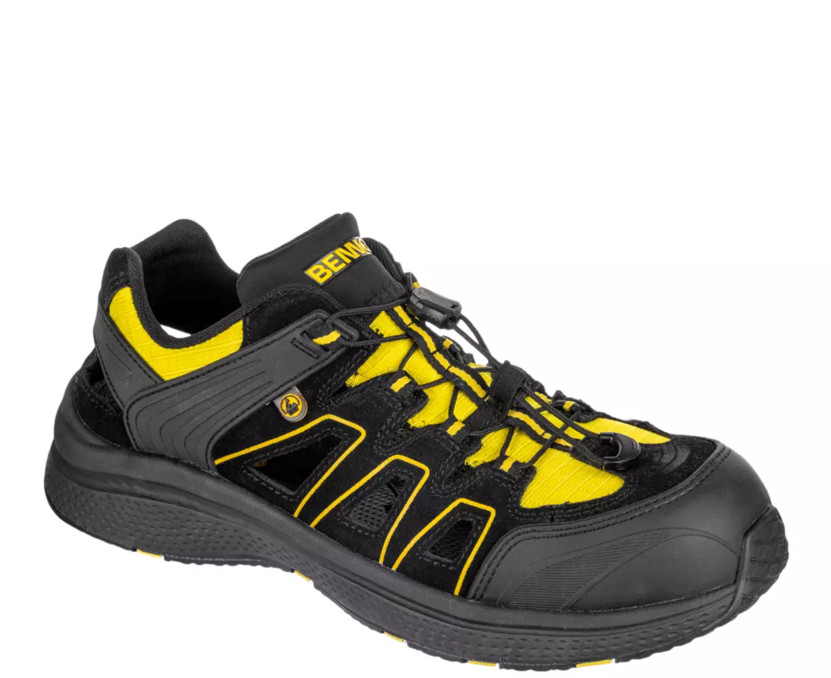 Vzdušný a odolný bezpečnostní sandál s širokým střihem, ideální pro práci ve vnitřních i suchých venkovních prostorách.