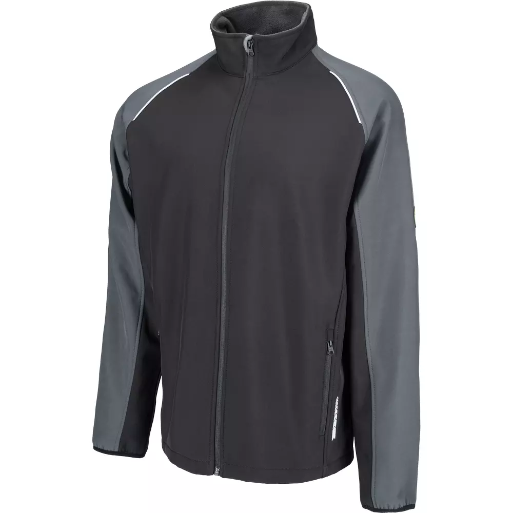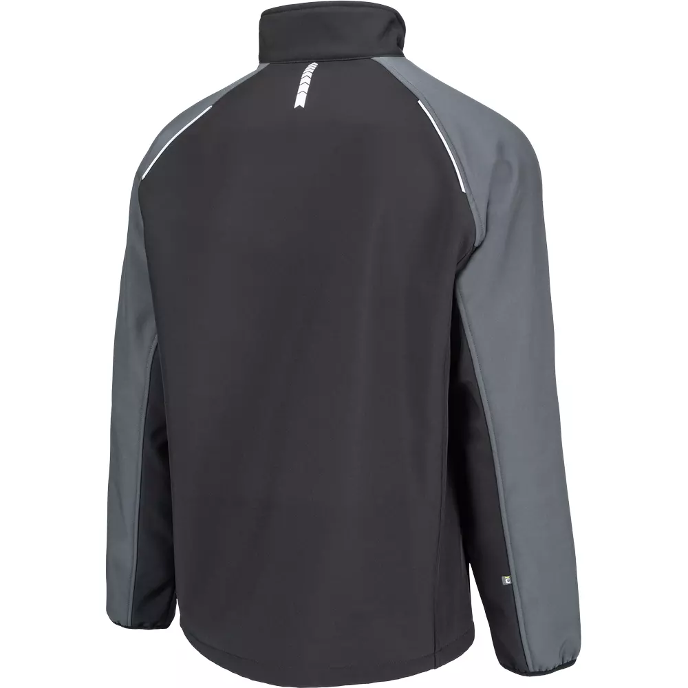 • softshellová bunda bez kapuce se zapínáním na zip • 2 boční kapsy na zip • elastické lemy rukávů • reflexní lemování