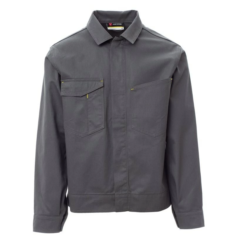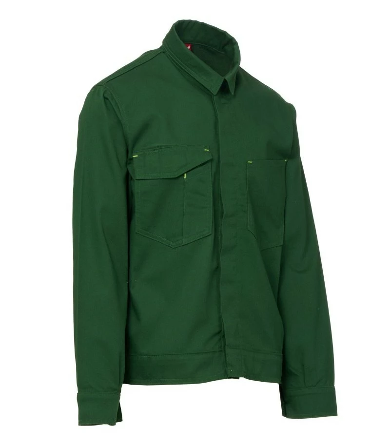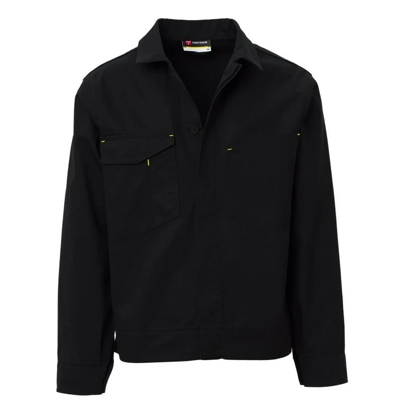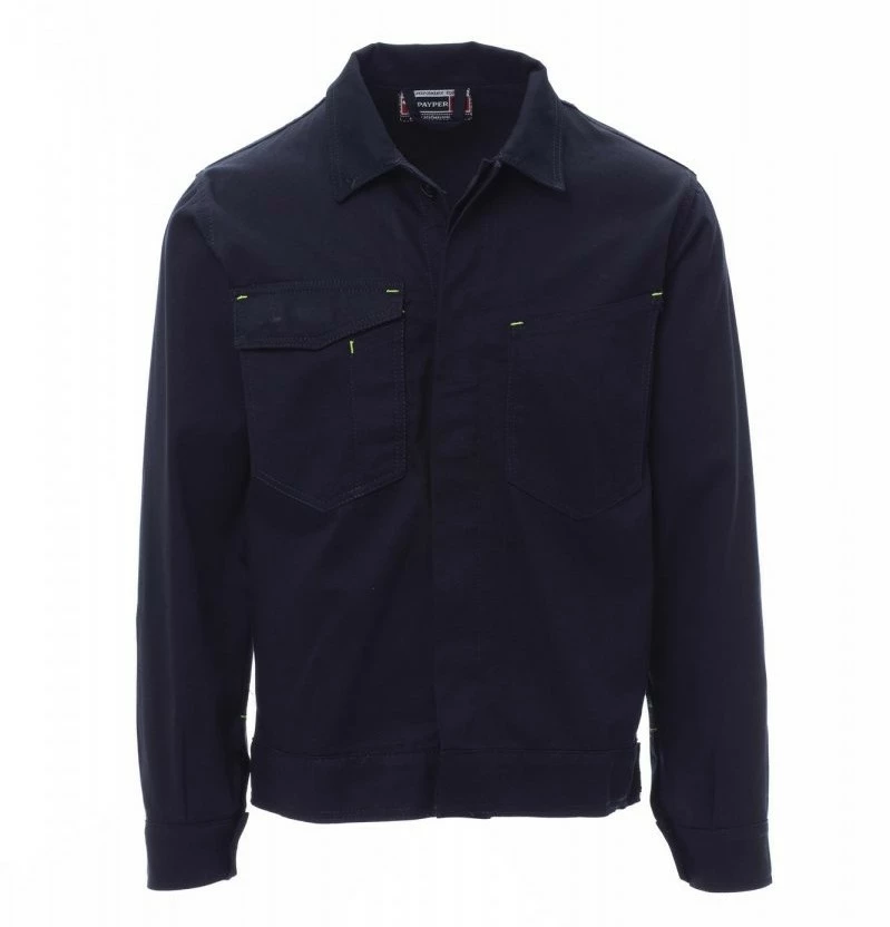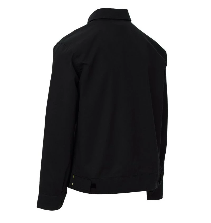 Lehká bunda ve vyštíhleném džínovém střihu, přední zapínání na skryté plastové knoflíky. Dvě kapsy na hrudi, z nichž jedna je kapsa na smartphone, druhá je na pružné pouzdro na jmenovku a očko na tužku s uzavírací klopou na suchý zip. Zapínání na zápěstí na knoflík a stahovací pas na suchý zip.