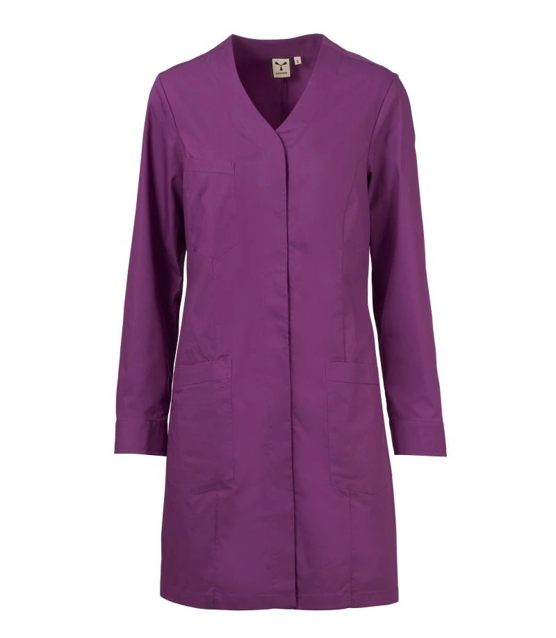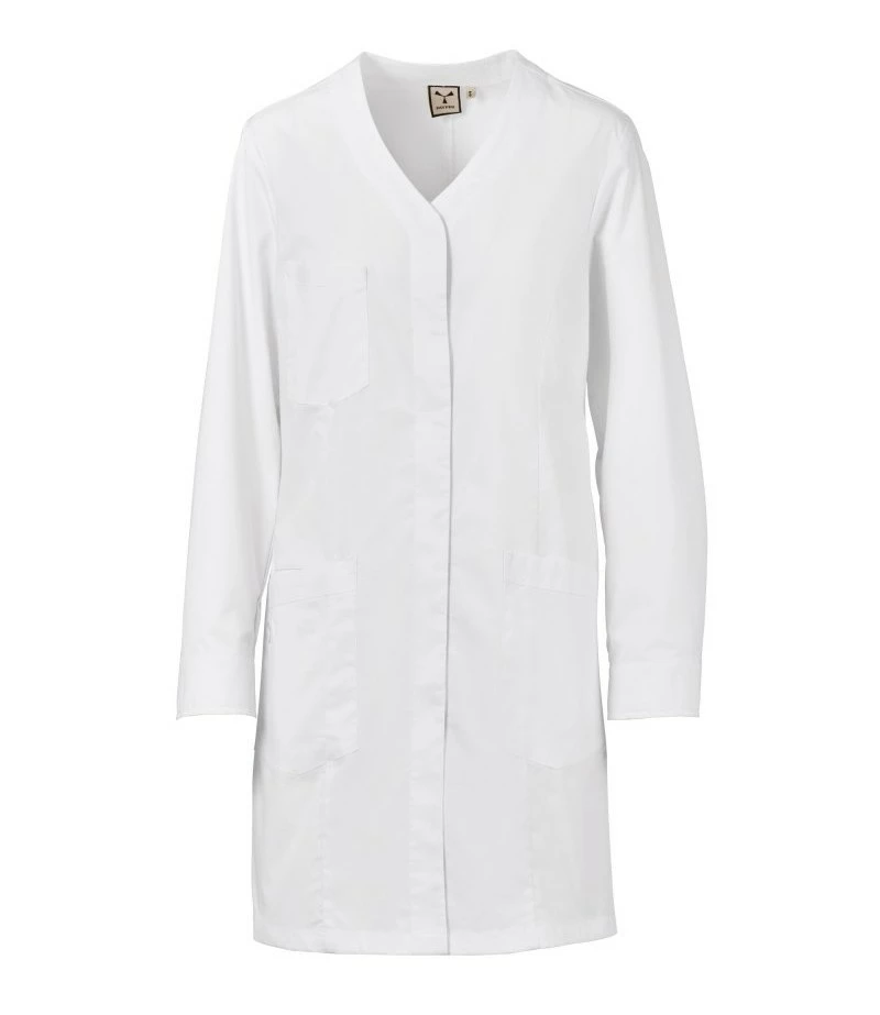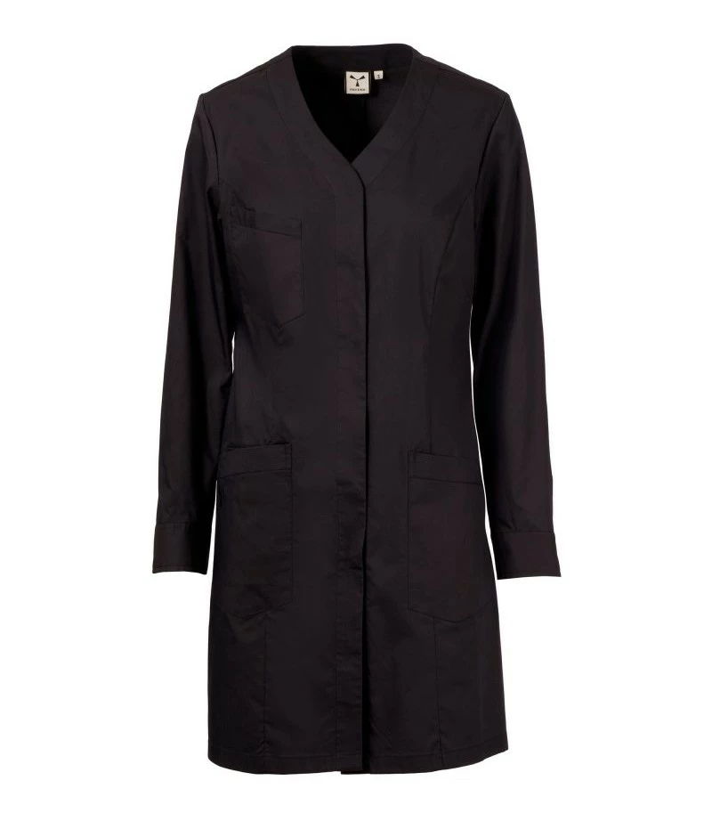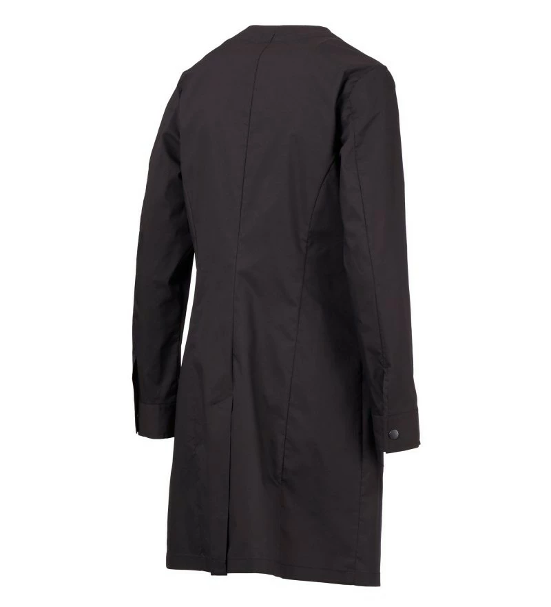 Dámský dlouhý plášť, s výstřihem do V, z bavlněného popelínu, polyesteru a Lycry ® T400 ®, s vynikajícími elastickými a prodyšnými vlastnostmi. Kryté středové zapínání, dlouhý rukáv a manžety se zapínáním na druky. Tři našité kapsy: jedna na hrudi; dvě spodní, z nichž jedna s ikonickou vrtulí Payper vyšitou tón v tónu a jedna vnitřní kapsa na smartphone. Zadní díl se středovým a bočním střihem. Rozparek ve spodní části pro usnadnění pohybu.