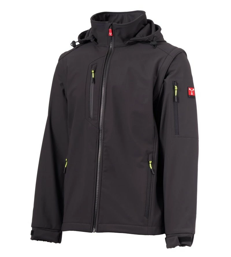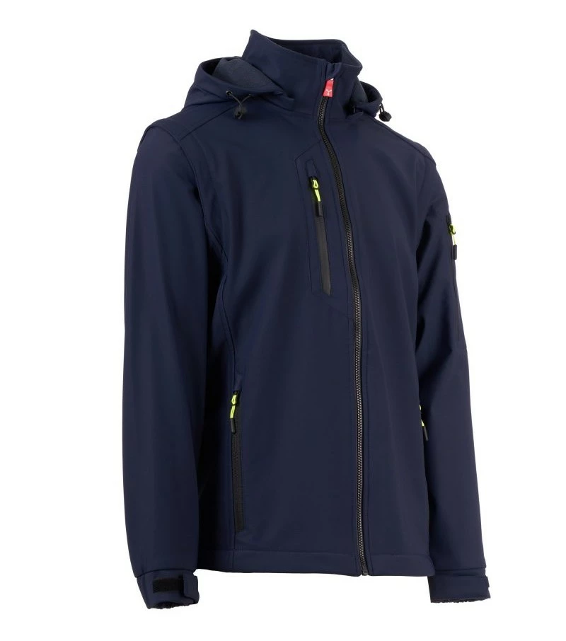 Pánský zateplený softshell 3 vrstvy, odnímatelné rukávy, zapínání na zip SBS s kovovým jezdcem „semi-auto lock“ a přizpůsobeným taháčkem. Odnímatelná kapuce se stahovací šňůrkou. Reflexní pásky ve spodní části zad a zadní straně kapuce. Elastické stahovací manžety na suchý zip. Dvě boční kapsy na zip, jedna kapsa na hrudi s voděodolným zipem a jedna kapsa na levé paži s integrovaným očkem na pero na zip. Fluorescentní taháčky. Jedna vnitřní prostřižená kapsa na suchý zip. Spodní část stažitelná pomocí přizpůsobených zarážek.