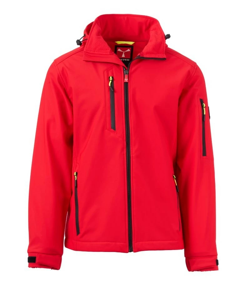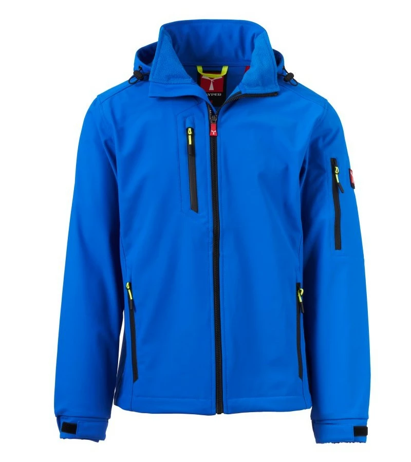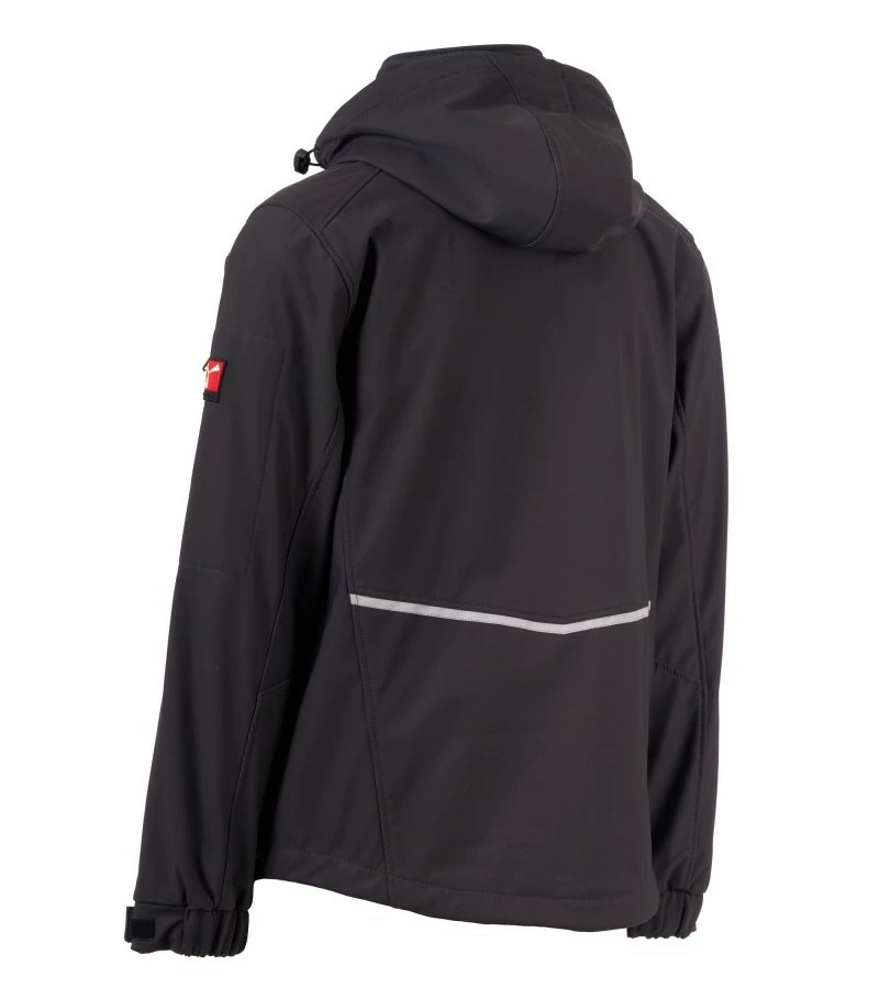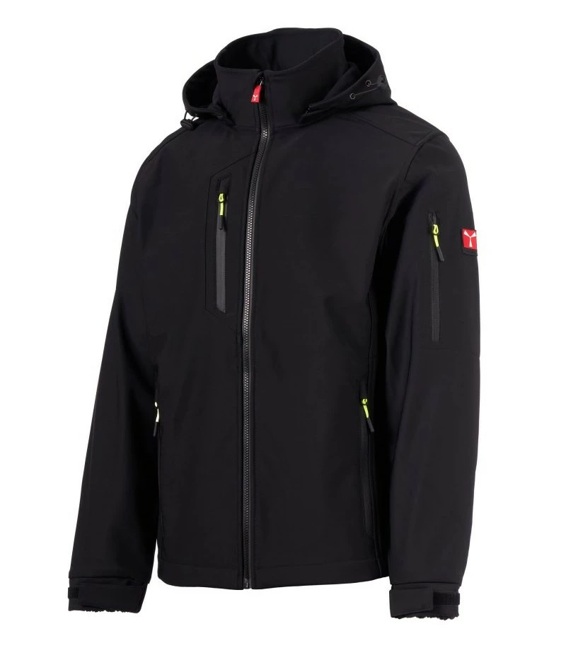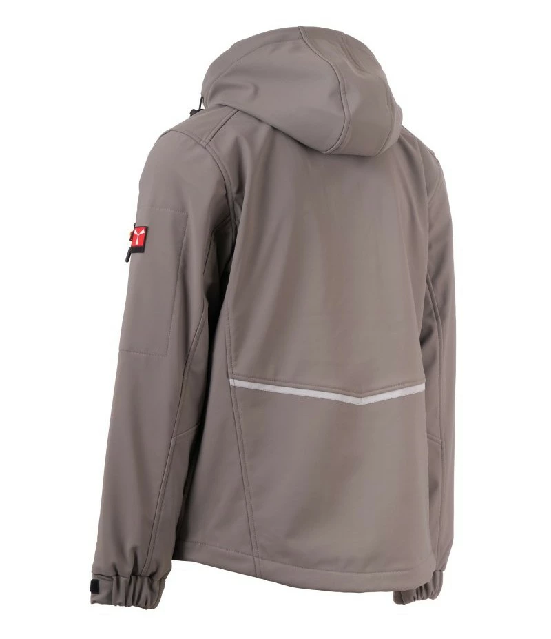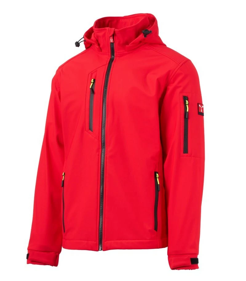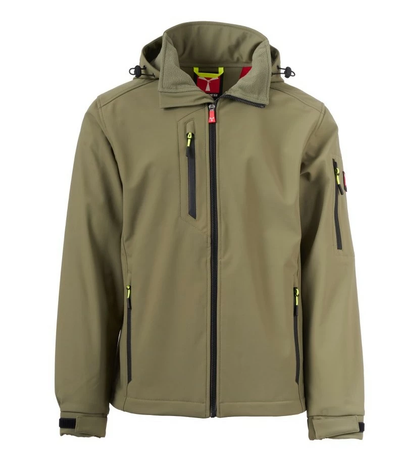 Pánský lehký softshell 3 vrstvy, zapínání na zip SBS s kovovým jezdcem „semi-auto lock“ a přizpůsobeným taháčkem. Odnímatelná kapuce se stahovací šňůrkou. Reflexní pásky ve spodní části zad a zadní straně kapuce. Elastické stahovací manžety na suchý zip. Dvě boční kapsy na zip, jedna kapsa na hrudi s voděodolným zipem a jedna kapsa na levé paži s integrovaným očkem na pero na zip. Fluorescentní taháčky. Jedna vnitřní prostřižená kapsa na suchý zip. Spodní část stažitelná pomocí přizpůsobených zarážek.