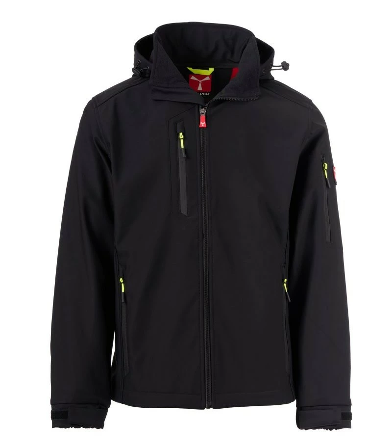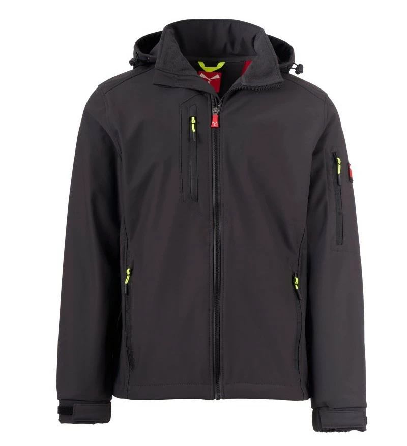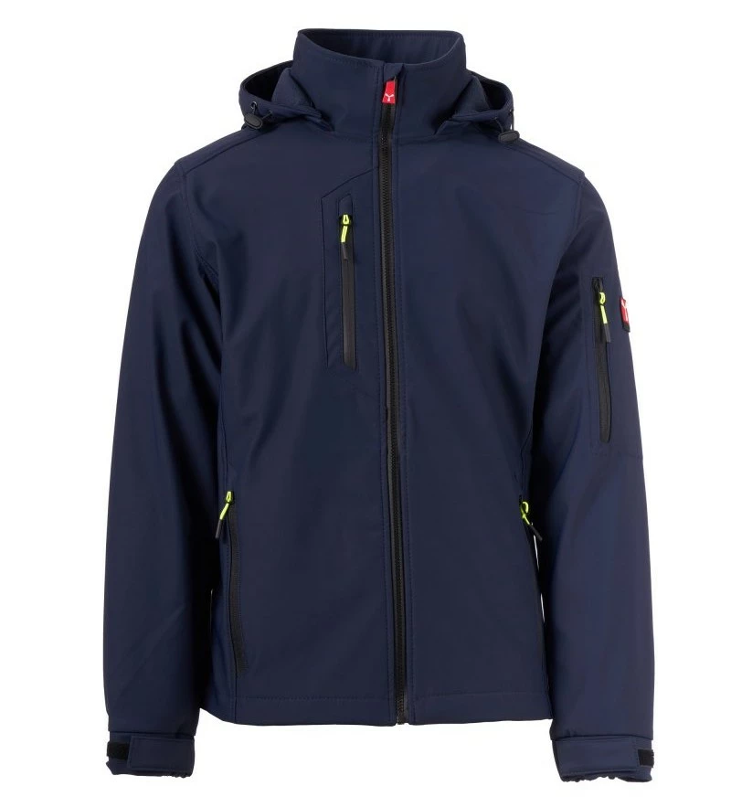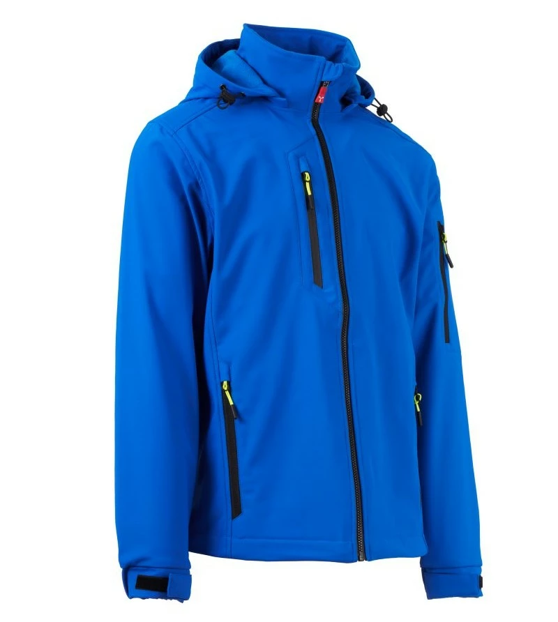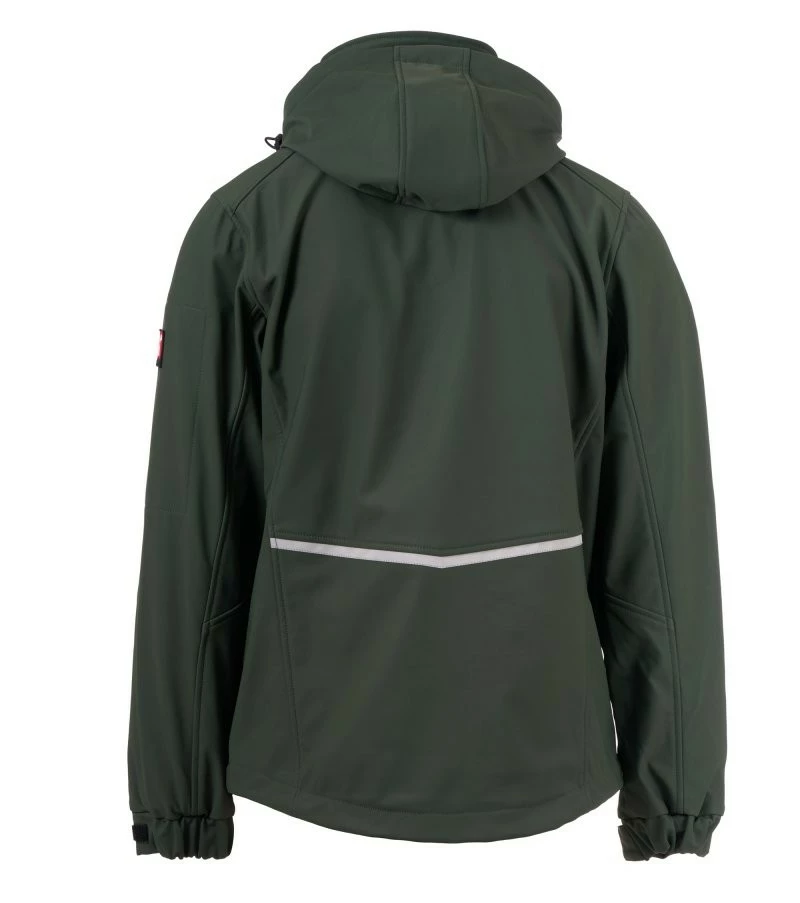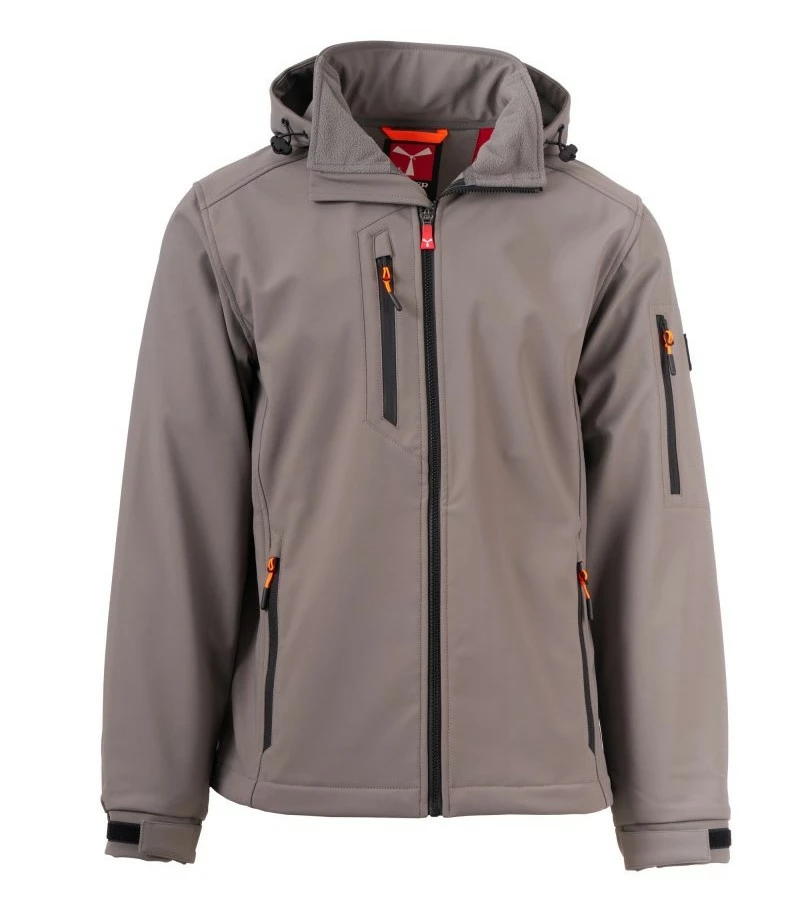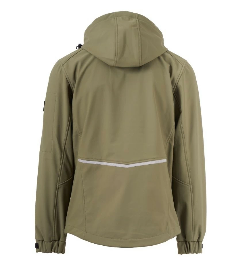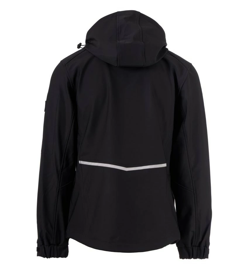 Pánská softshellová bunda, zapínání na zip SBS s kovovým jezdcem „semi-auto lock“ a přizpůsobeným taháčkem. Odnímatelná kapuce se stahovací šňůrkou. Reflexní pásky ve spodní části zad a zadní straně kapuce. Elastické stahovací manžety na suchý zip. Dvě boční kapsy na zip, jedna kapsa na hrudi s voděodolným zipem a jedna kapsa na levé paži s integrovaným očkem na pero na zip. Fluorescentní taháčky. Jedna vnitřní prostřižená kapsa na suchý zip. Spodní část stažitelná pomocí přizpůsobených zarážek.