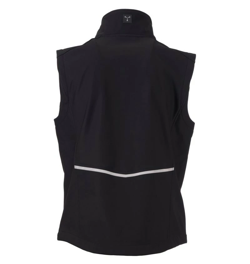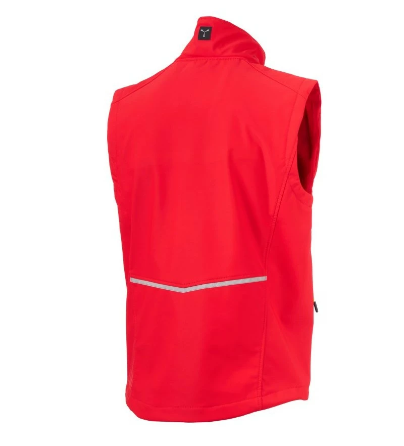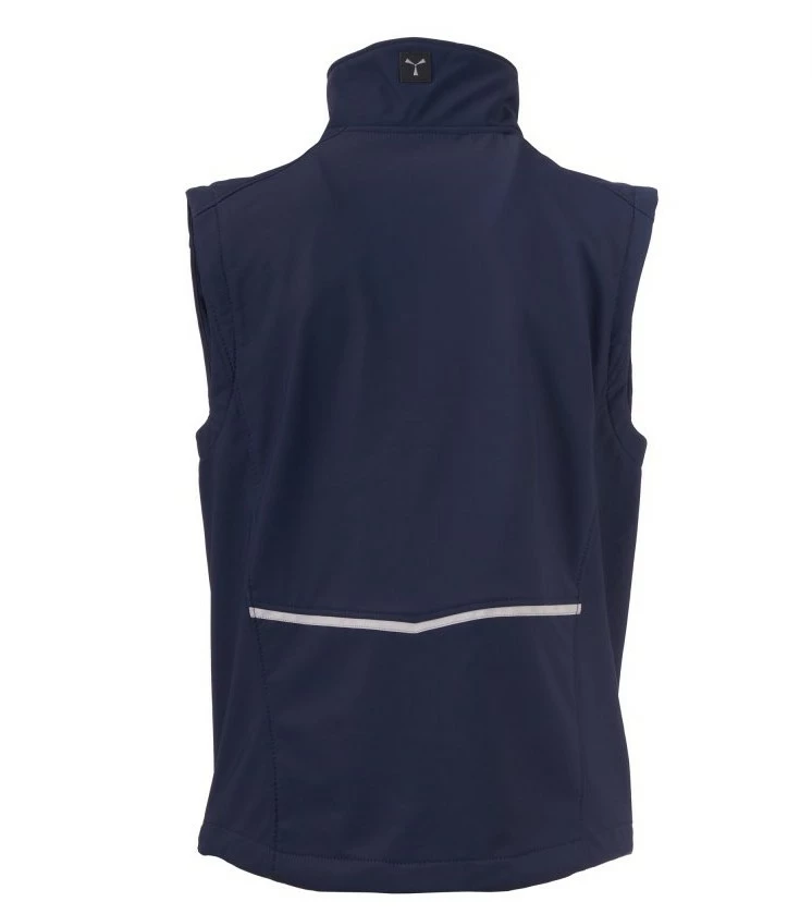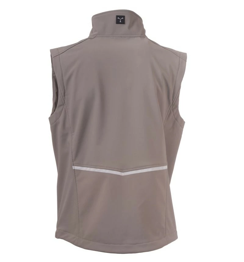 Pánská lehká softshellová vesta, 3 vrstvy, zapínání na zip SBS s kovovým jezdcem „semi-auto lock“ a přizpůsobeným taháčkem. Reflexní páska ve spodní části zad. Dvě boční kapsy na zip, jedna kapsa na hrudi s voděodolným zipem. Fluorescentní taháčky. Jedna vnitřní prostřižená kapsa na suchý zip. Spodní část stažitelná pomocí přizpůsobených zarážek.