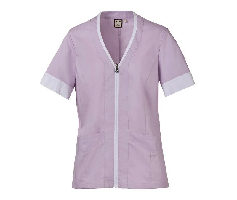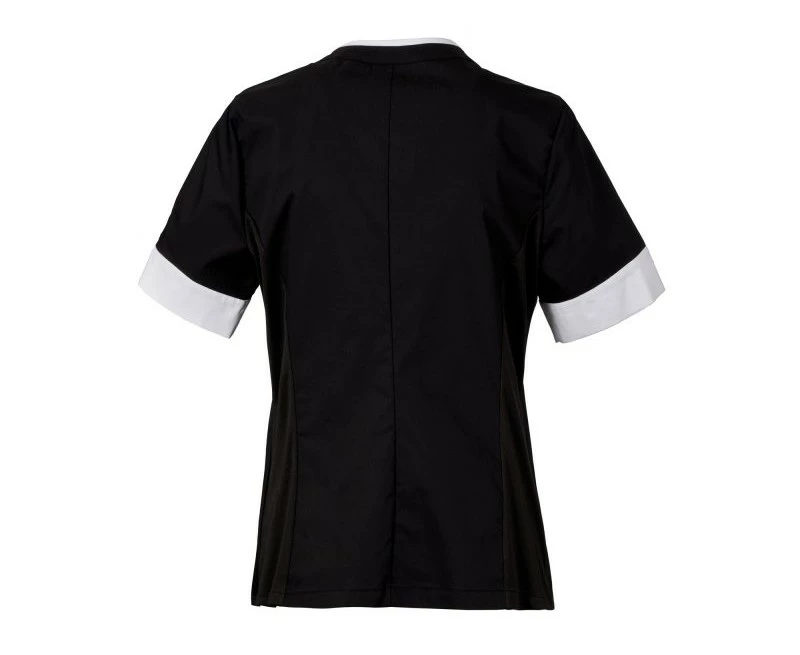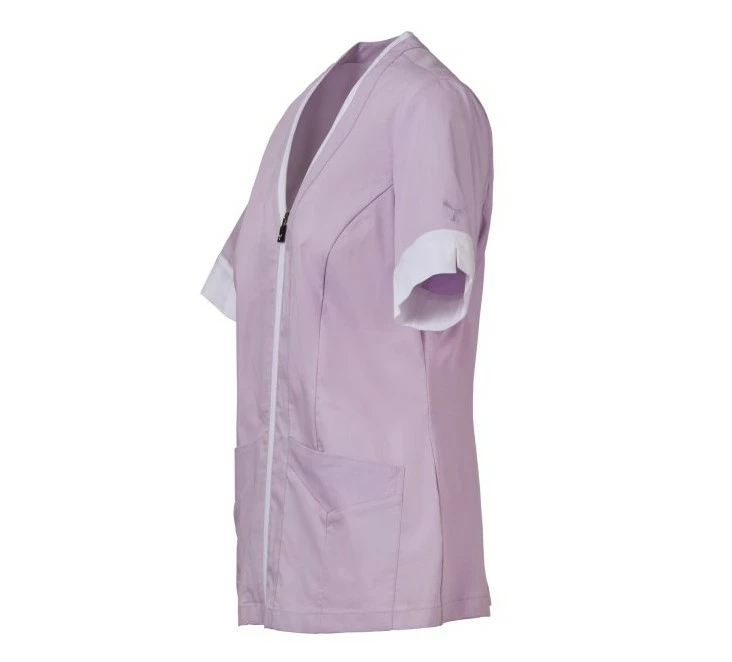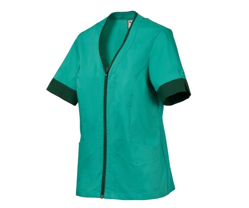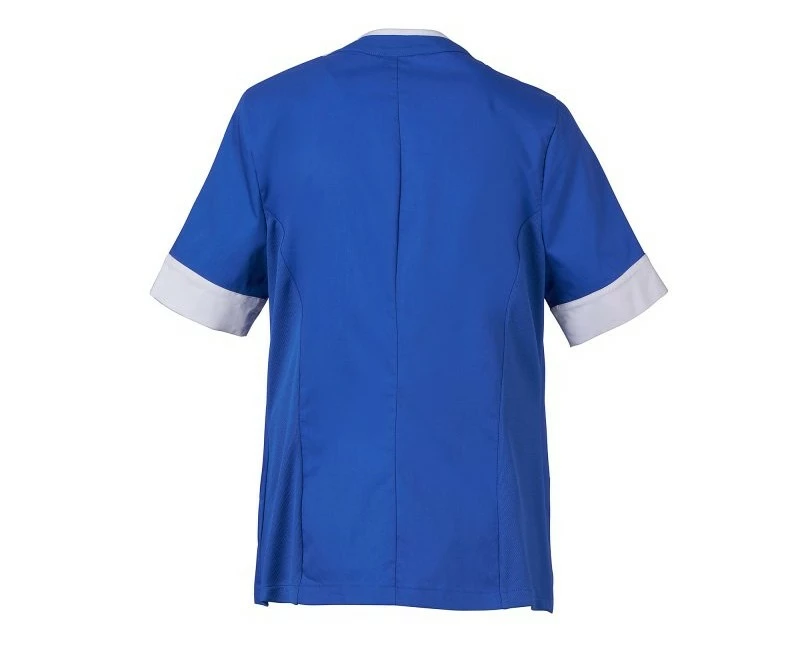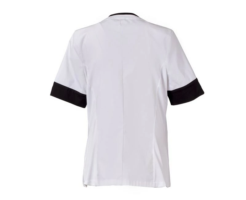 Dámský plášť s krátkým rukávem, z bavlněného popelínu, polyesteru a Lycry ® T400 ® v kombinaci s pohodlnou síťovinou v zadní části boků pro usnadnění pohybu a zlepšení prodyšnosti. Výstřih do V zakončený kontrastním barevným lemem. Středové zapínání na zip a kontrastní jezdec „semi auto-lock“. Dvě spodní našité kapsy s klopou. Rukávy s kontrastními okraji, z nichž jeden má ikonickou vrtuli Payper vyšívanou tón v tónu.
