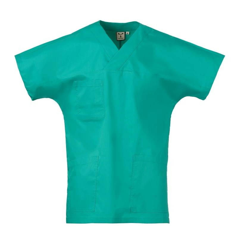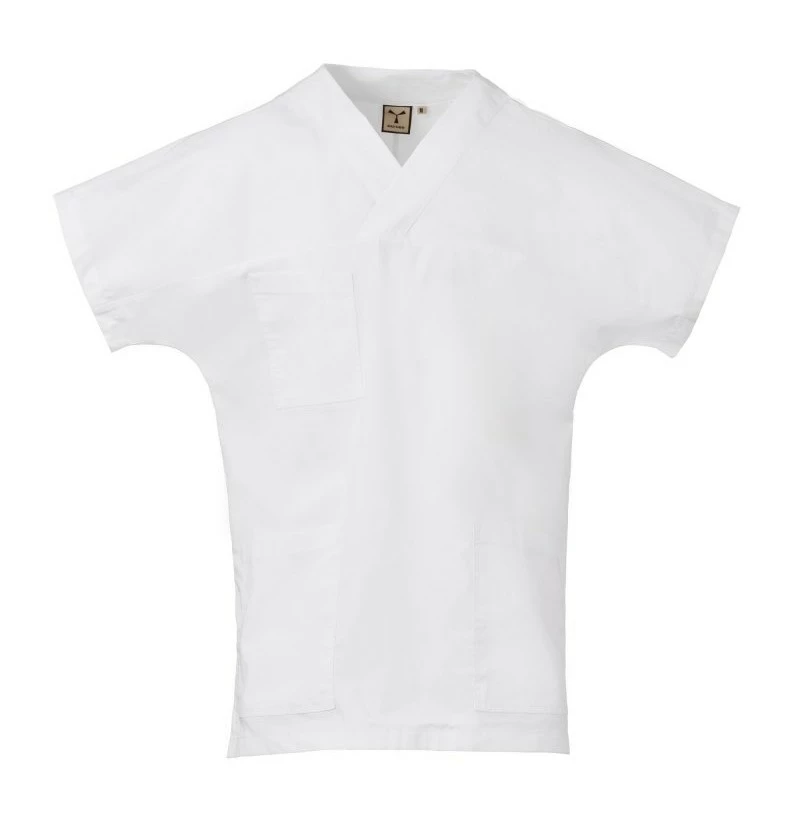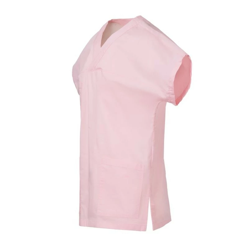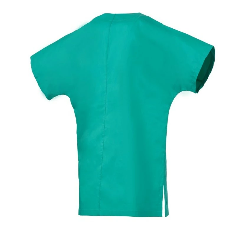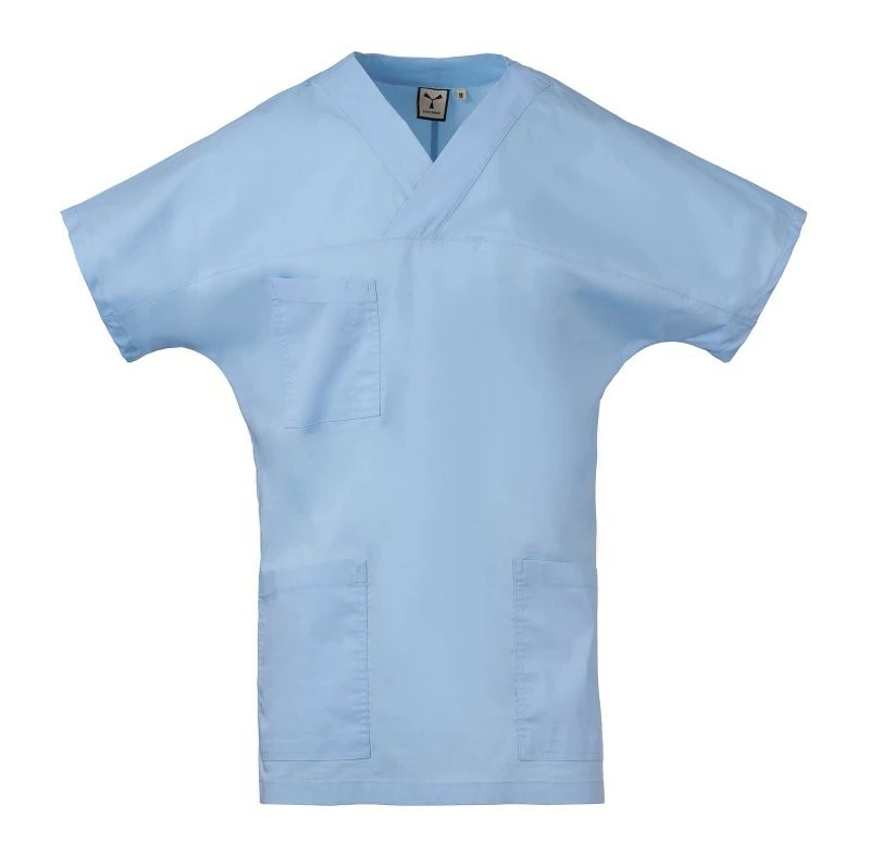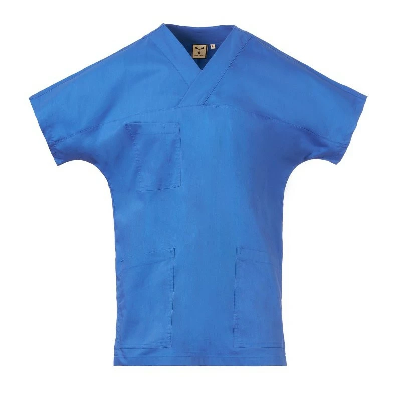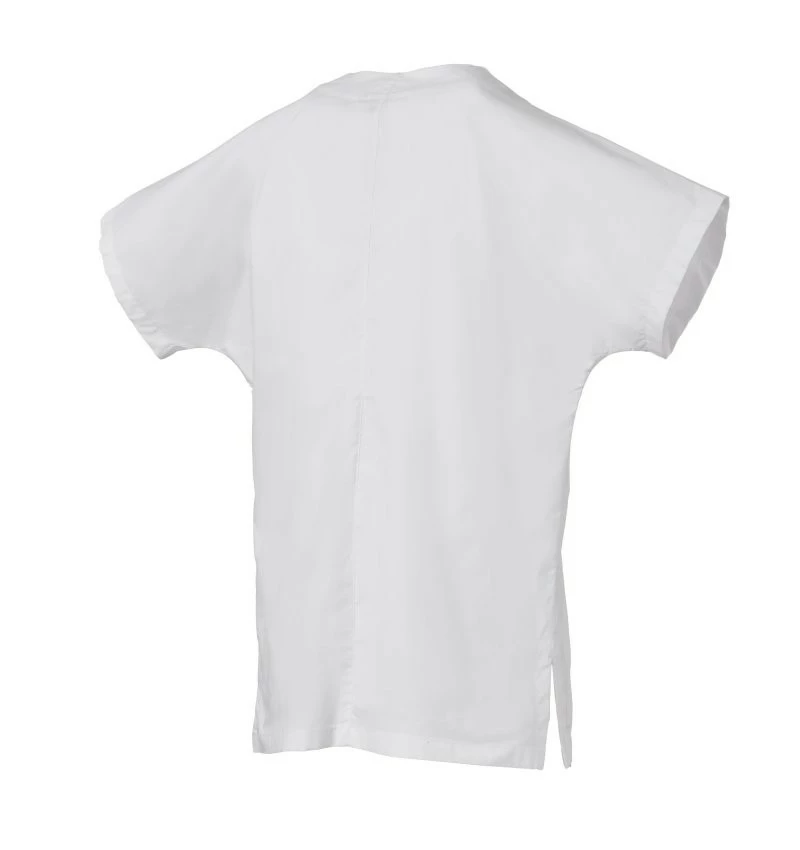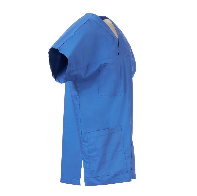 Halena s velmi krátkým a širokým rukávem pro volnost pohybu, s výstřihem do V, z bavlněného popelínu, polyesteru a Lycry ® T400 ®, s vynikajícími elastickými a prodyšnými vlastnostmi. Vodorovný střih na přední straně. Kapsa na hrudi s přihrádkou na pero. Dvě velké spodní našité kapsy. Zadní díl se středovým střihem. Boční rozparky pro usnadnění pohybu.