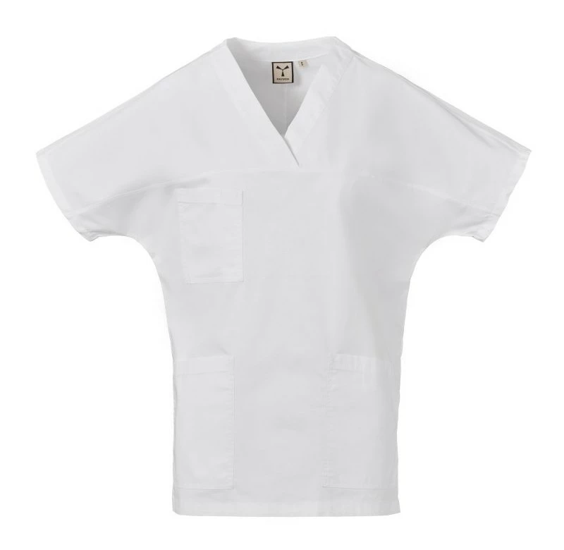 Halena s velmi krátkým a širokým rukávem pro volnost pohybu, s výstřihem do V, z bavlněného popelínu, polyesteru a Lycry ® T400 ®, s vynikajícími elastickými a prodyšnými vlastnostmi. Vodorovný střih na přední straně. Kapsa na hrudi s přihrádkou na pero. Dvě velké spodní našité kapsy. Zadní díl se středovým střihem. Boční rozparky pro usnadnění pohybu.