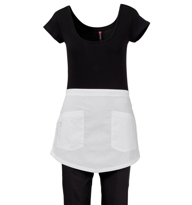 Dámská krátká zástěra z bavlněného popelínu, polyesteru a Lycry ® T400 ®, s vynikajícími elastickými a prodyšnými vlastnostmi. Zapínání v zadní části v pase na látkové pásky. Se dvěma velkými kapsami, z nichž jedna s ikonickou vrtulí Payper vyšívanou tón v tónu. Tvarovaná spodní část pro osobitý vzhled.