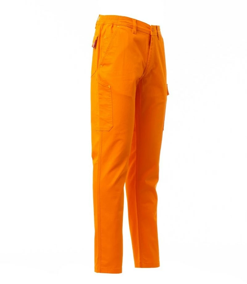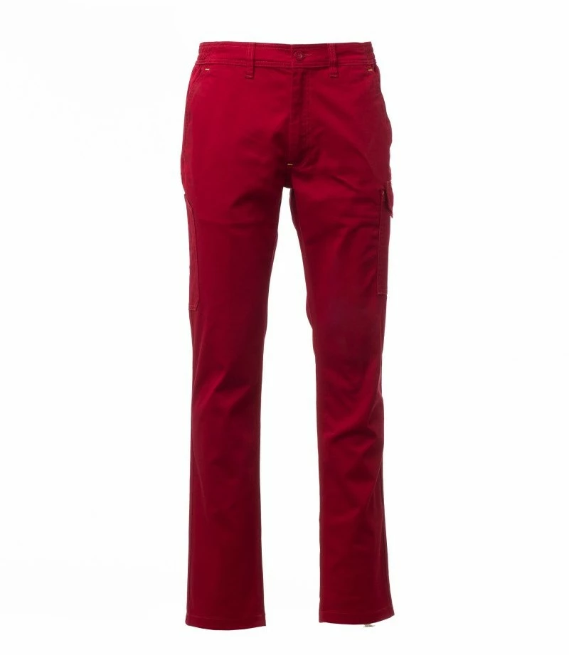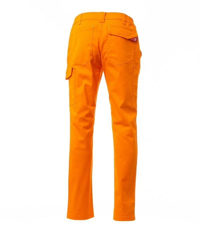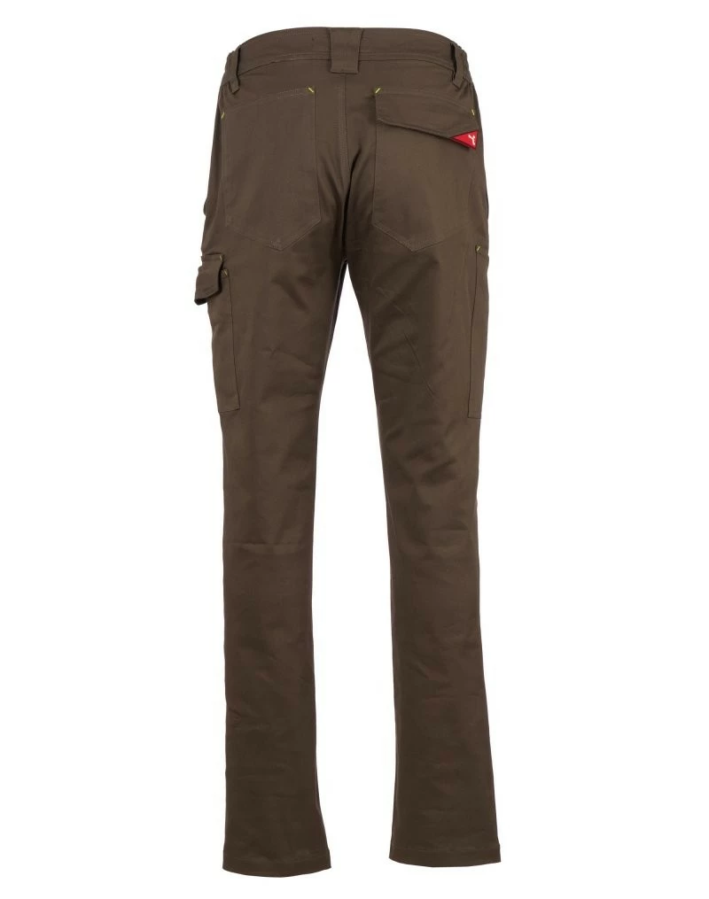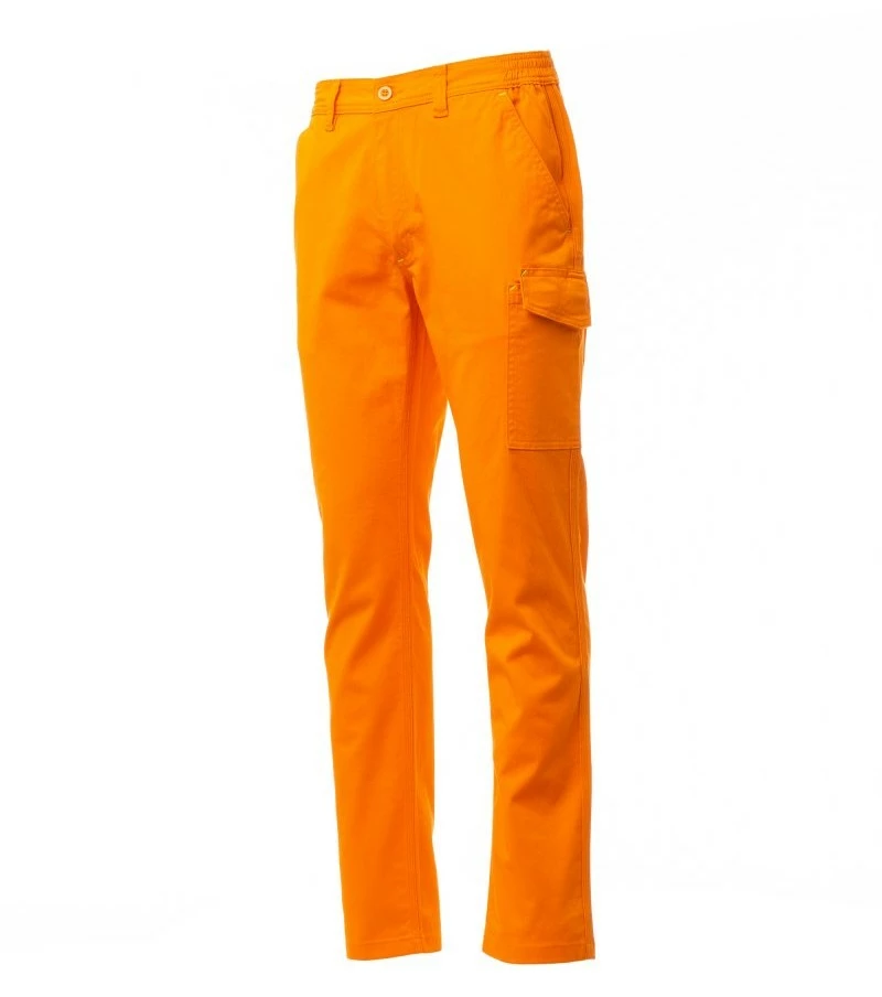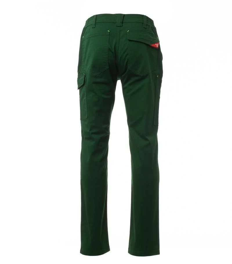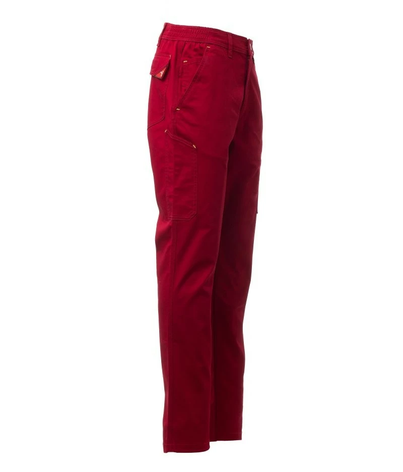 Kalhoty s poutky a s elastickým páskem v pase, zapínání na zip a knoflík, zpevněné prošití trojjehlou v rozkroku a na vnitřní straně nohavice, prošití na boku dvojjehlou, dvě přední kapsy klasického střihu, kapsička na mince, pravá postranní kapsa na svinovací metr, levá postranní kapsa s uzavírací klopou LOCK SYSTEM, dvě zadní kapsy, z nich jedna s klopou na suchý zip.