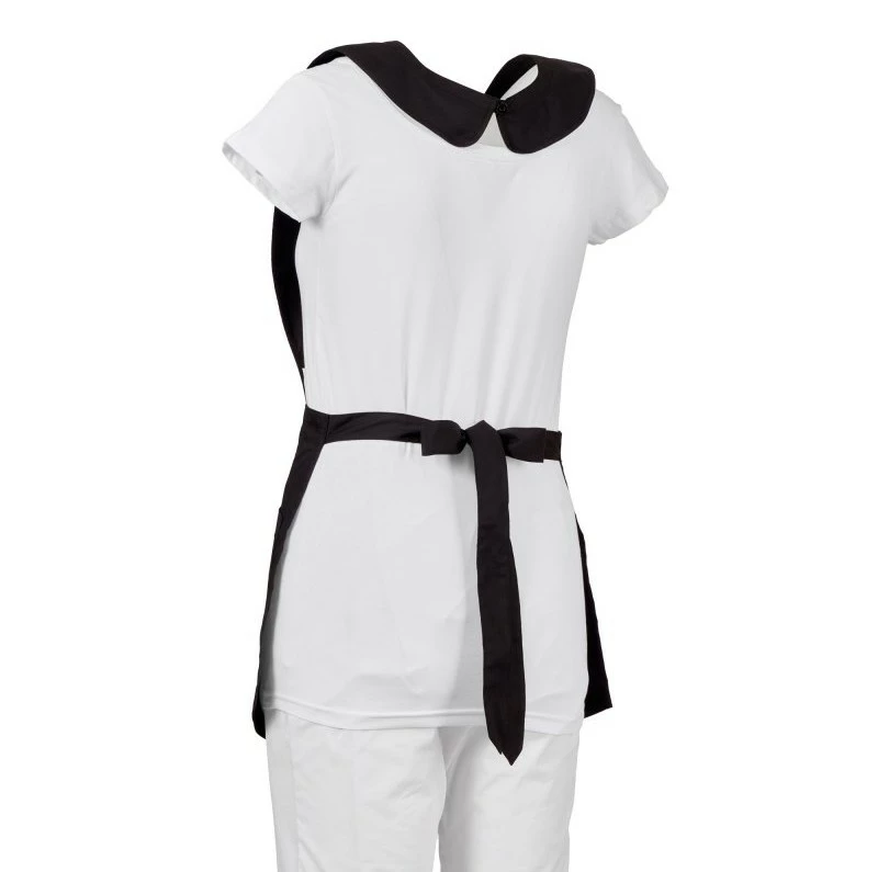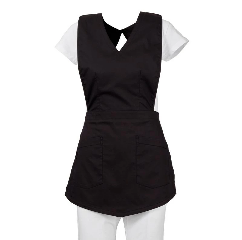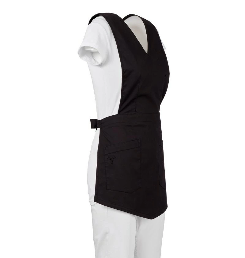 Dámská krátká zástěra s náprsenkou, z bavlněného popelínu, polyesteru a Lycry ® T400 ®, s vynikajícími elastickými a prodyšnými vlastnostmi. Zapínání v zadní části v pase na látkové pásky. Se dvěma velkými kapsami, z nichž jedna s ikonickou vrtulí Payper vyšívanou tón v tónu. Tvarovaná spodní část pro osobitý vzhled a svislé prošívání k zeštíhlení postavy.