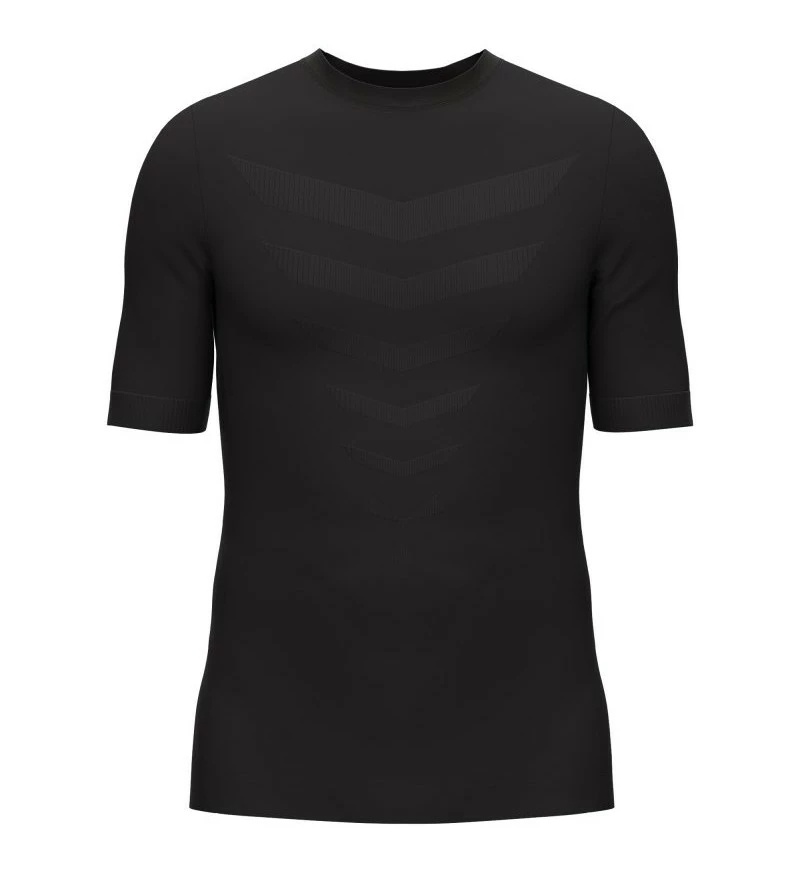 Technické tričko s krátkým rukávem, s lemovaným kulatým výstřihem z prodyšného, elastického materiálu. Tubusová struktura, střih slim fit. Perforace na hrudi, bocích a zádech. Reliéfní motiv vrtule na přední straně.