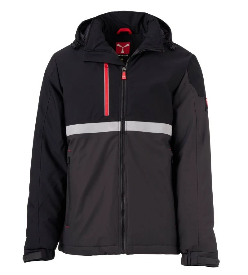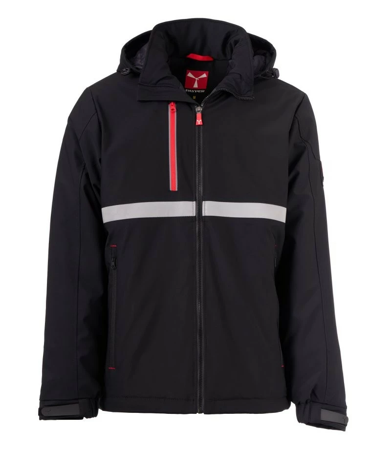 Pánský softshell 3 vrstvy, střední výplň (140g/m²), zapínání na zip SBS s kovovým jezdcem „semi-auto lock“ a přizpůsobeným taháčkem. Odnímatelná kapuce se stahovací šňůrkou. Přední reflexní páska na hrudi. Elastické stahovací manžety na suchý zip a vnitřní manžetka. Dvě boční kapsy na zip a jedna kapsa na hrudi na zip s reflexním prvkem. Prvek „life-saving“ na zadní straně, s vnitřním reflexním logem a zapínáním na zip. Dvě vnitřní kapsy, z nichž jedna tvarovaná na zip na pravé straně hrudi a druhá na tablet se zapínáním na suchý zip. Spodní část stažitelná pomocí přizpůsobených zarážek.