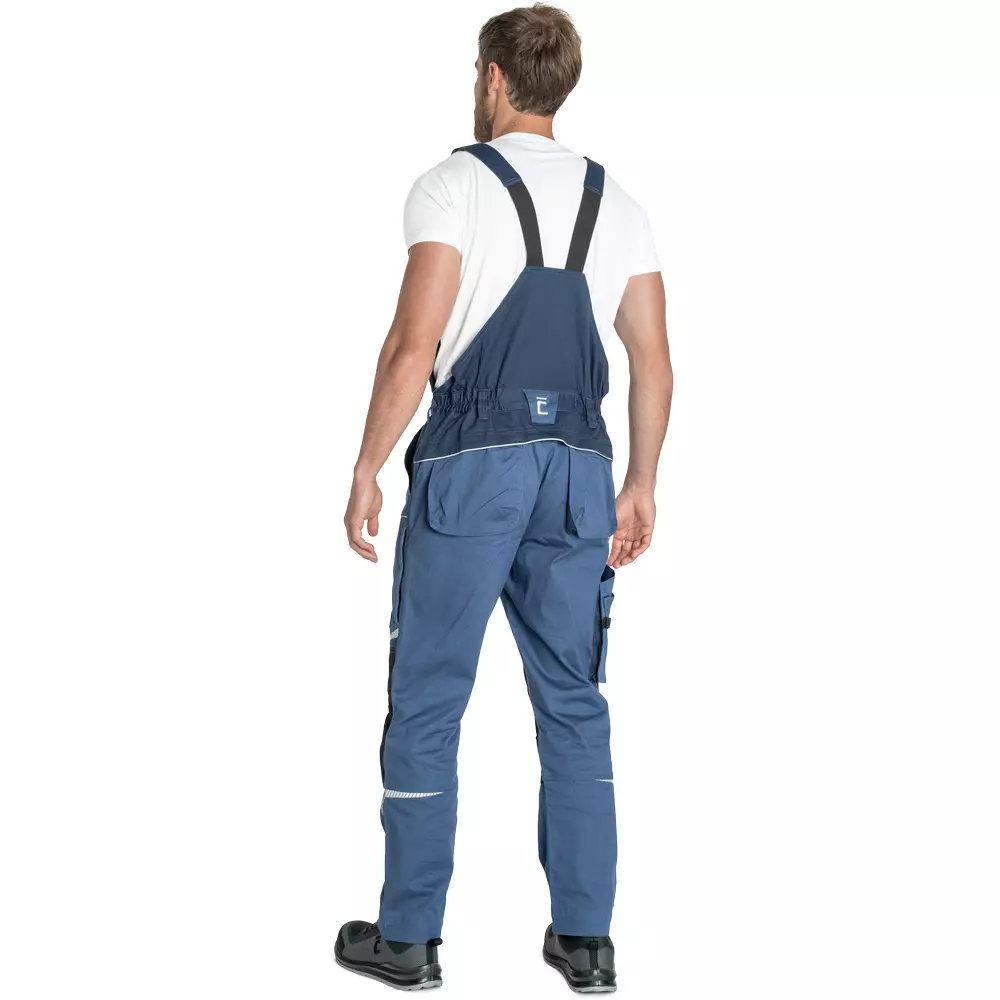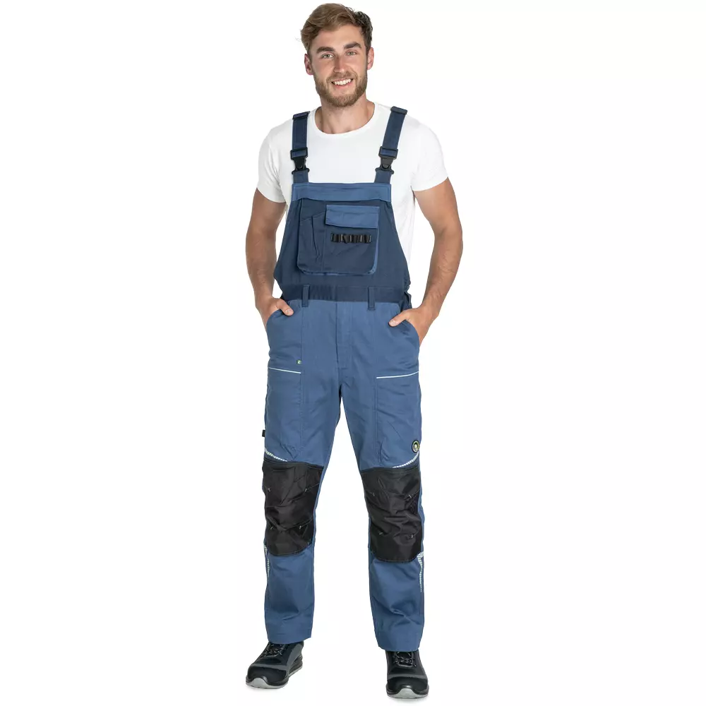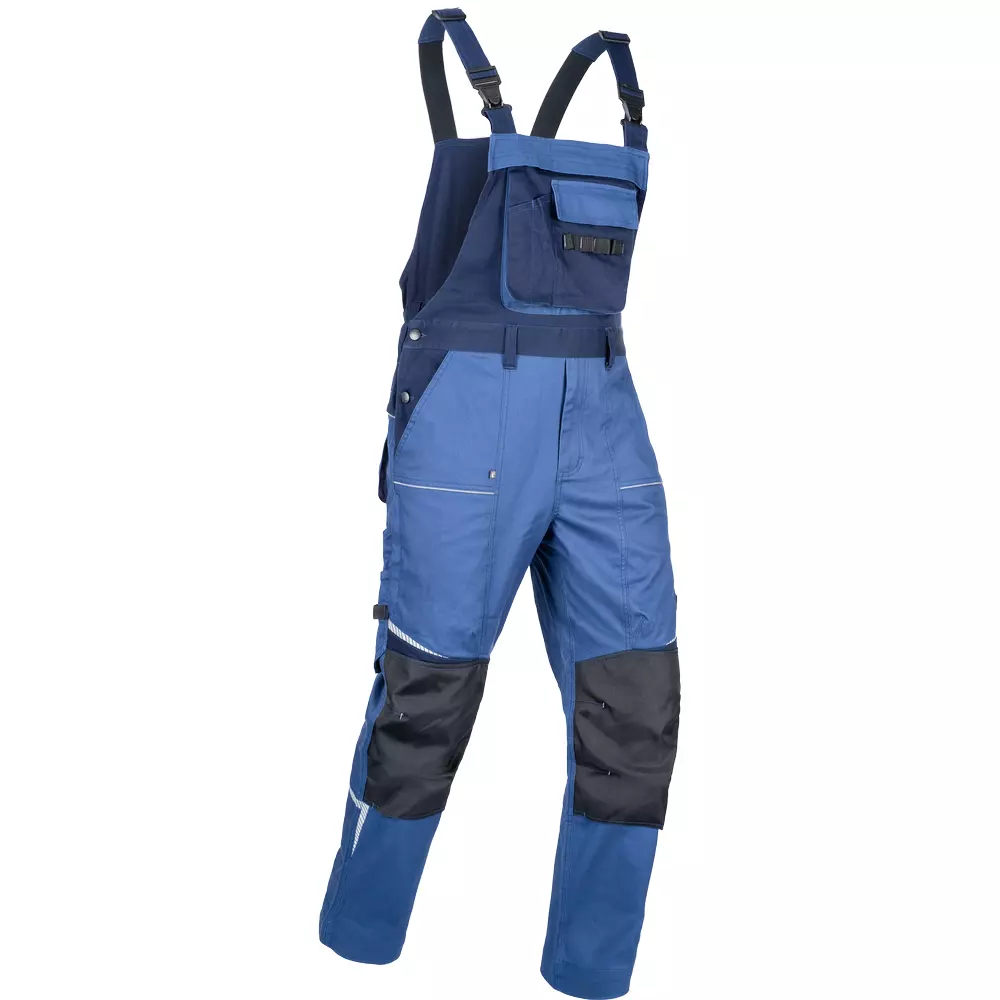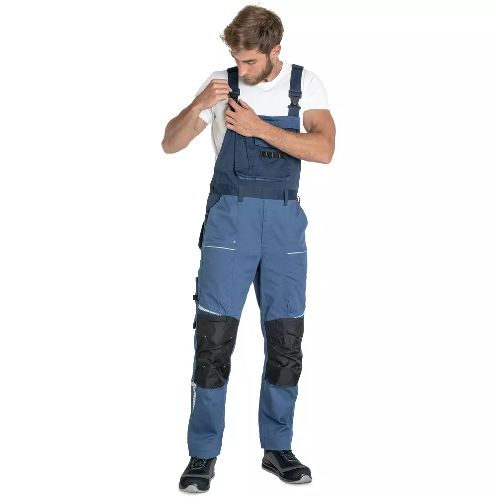 • pánské pracovní laclové kalhoty ze strečové tkaniny • pružný pas s poutky na opasek • 2 přední kapsy, 2 zadní kapsy • 2 stehenní ventilační mesh kapsy na zip • 1 multifunkční kapsa na pravém stehně • 1 multifunkční náprsní kapsa • zesílené kolenní části pro vložení kolenních chráničů • reflexní lemování a tištěné reflexní detaily • nohavice prodloužitelné o 5 cm