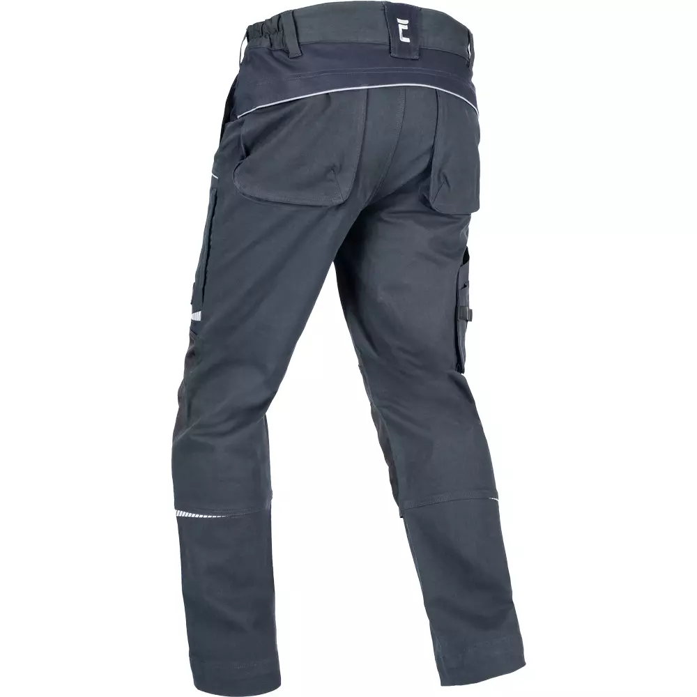 • pánské pracovní kalhoty z lehké strečové tkaniny • pružný pas s poutky na opasek • 2 přední kapsy, 2 zadní kapsy • 2 stehenní ventilační mesh kapsy na zip • 1 multifunkční kapsa na pravém stehně ¨• reflexní lemování a tištěné reflexní detaily • nohavice prodloužitelné o 5 cm