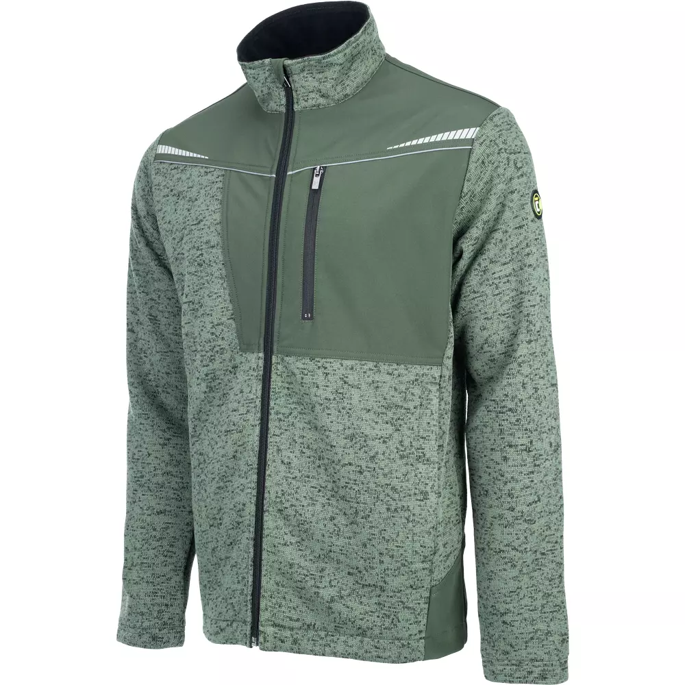• pletený svetr se zapínáním na zip • 2 boční kapsy na zip • 1 náprsní kapsa na zip • reflexní lemování a tištěné reflexní detaily